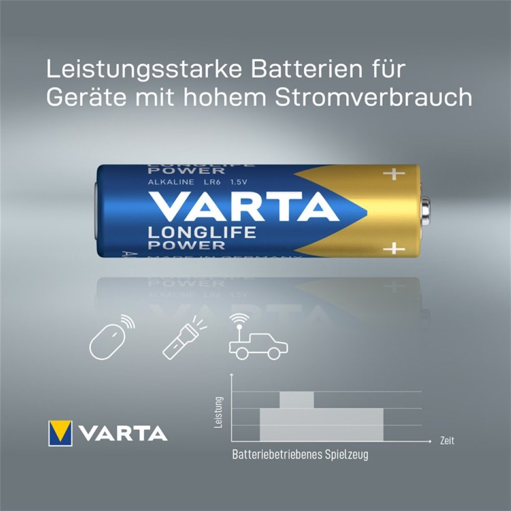 - VARTA AA-Batterien sorgen für die konstante Stromversorgung von Geräten des täglichen Bedarfs.