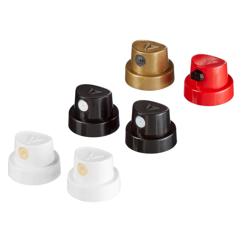 praykopfset mit 6 austauschbaren Sprayköpfen in 4 verschienen Sprühbreiten für vielfältige Anwendungsmöglichkeiten. 2x weisser Kopf: Sprühstärke fein (ca. 1cm) Optimaler Sprühabstand 1-3cm, für einen sauberen, dünnen Sprühstrahl z.B. für Computergehäuse oder Handys. 2x schwarzer Kopf: Sprühstärke mittel (ca. 4-5cm) Optimaler Sprühabstand 5-10cm, für einen sauberen und mittelbreiten Sprühstrahl. Ideal für Ecken und Winkel z.B. von Türrahmen oder CD-Regalen. 1x goldiger Kopf: Sprühstärke breit (ca. 8-10cm) Optimaler Sprühabstand 15-25cm, für grosse Flächen z.B. für Wände und Garagentore. 1x roter Kopf: Sprühstärke variabel (ca. 13-14cm) Optimaler Sprühabstand 15cm, für ein breites und sauberes Sprühbild, ähnlich einer Spritzpistole, auf grossen Flächen. Die Sprühdüse kann variabel eingestellt werden. Bitte beachten Sie die Sprühbewegungen je nach Düseneinstellung.